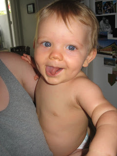 Lookit what I learned how to do! Flip my tongue! Isn't that genetic, paternal or maternal side? Yeah, I think I'll be a doctor some day too... I'm a smart one!